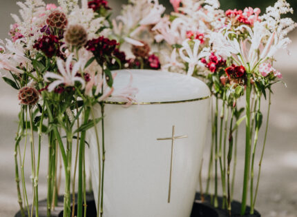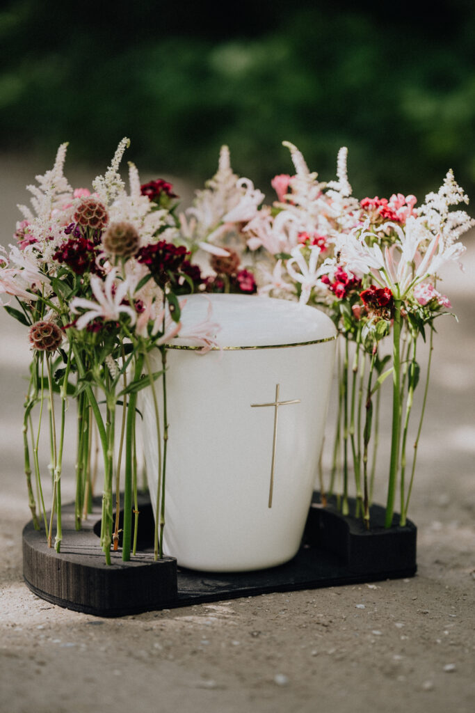 Einfühlsame Blumengestaltung für einen würdevollen Abschied.
